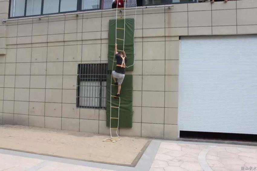 逃生梯体验:现场模拟四楼爆发火灾险情,要求各人通过逃生梯装置下降至二楼宁静区域,在事情人员的资助下,各人佩戴宁静装备后,依次完成了逃生体验,乐成抵达宁静区域。